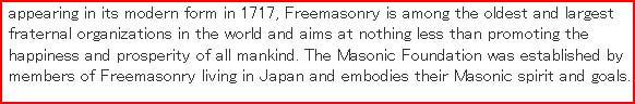 اعضای فراماسونری در ژاپن ادعا میکنند که سابقه فراماسونری در این کشور به مصر باستان و تجارت با حکومت های بین النهرین برمیگردد .