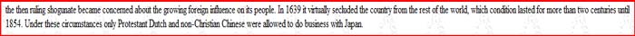 در زمان قدیم ژاپن به علت جزیره بودن در یک انزوای فرهنگی و تجاری قرار داشته است و تنها روبط کمی با کشور چین و کره داشته است . اولین مردمان غربی (اروپایی) استعمار گران پرتغالی بودند که در سال 1530 در یک جزیره کوچک در جنوب ژاپن به زمین نشستند سپس دیگر کشورها هم وارد ماجرا شدند اما بنا به مسئله ای که هجوم بیگانه ها در این کشور نامیده شد تا 200 سال با دنیا قطع رابطه میکند فقط مسیحیان پروتستان از اروپا امتیاز تجارت با این کشور را داشته اند البته عده ای این مسئله را اولین حرکت ماسون ها در ژاپن عنوان کرده اند